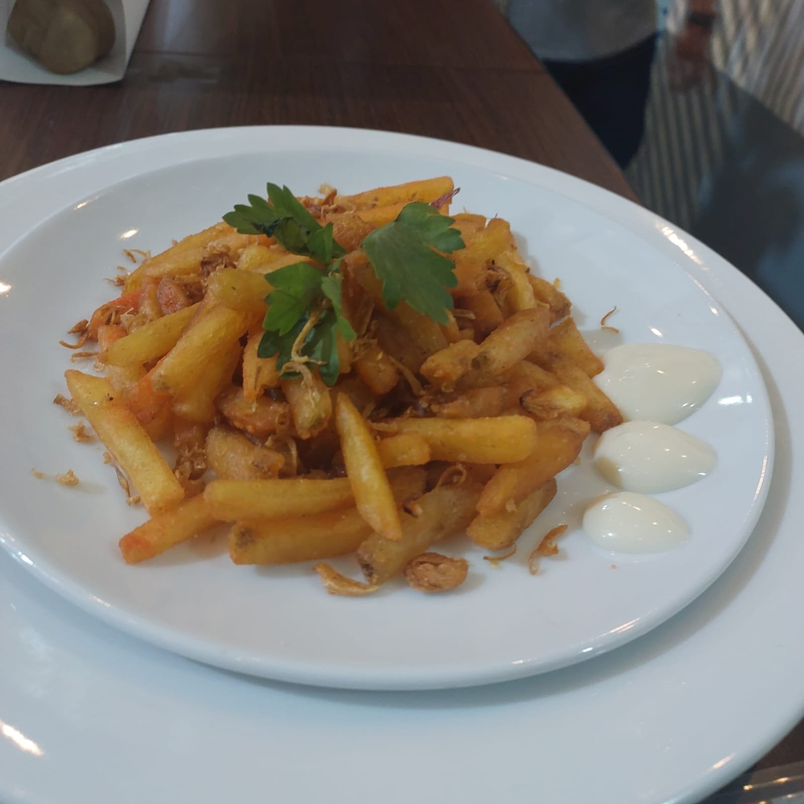 French fries (kentang goreng) adalah hidangan populer berupa potongan kentang panjang yang digoreng dalam minyak panas hingga luarnya renyah keemasan dan dalamnya lembut, sering dibumbui garam, dan disajikan sebagai camilan atau pendamping makanan utama seperti burger atau steak, dengan saus cocolan seperti saus tomat, mayones, atau saus lain.